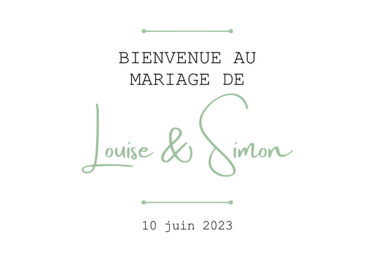 Affiche à imprimer "BIENVENUE AU MARIAGE DE" à personnaliser