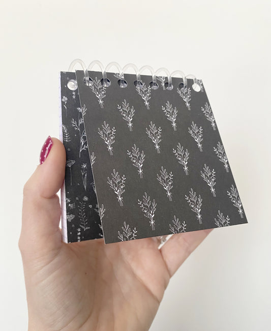 Mini carnet fleuri noir et blanc à spirales